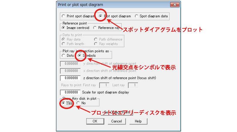 次のページではアパーチャの変更、グラフィックウインドウ内プロット拡縮、点像分布関数のプロット作成の操作について説明します。